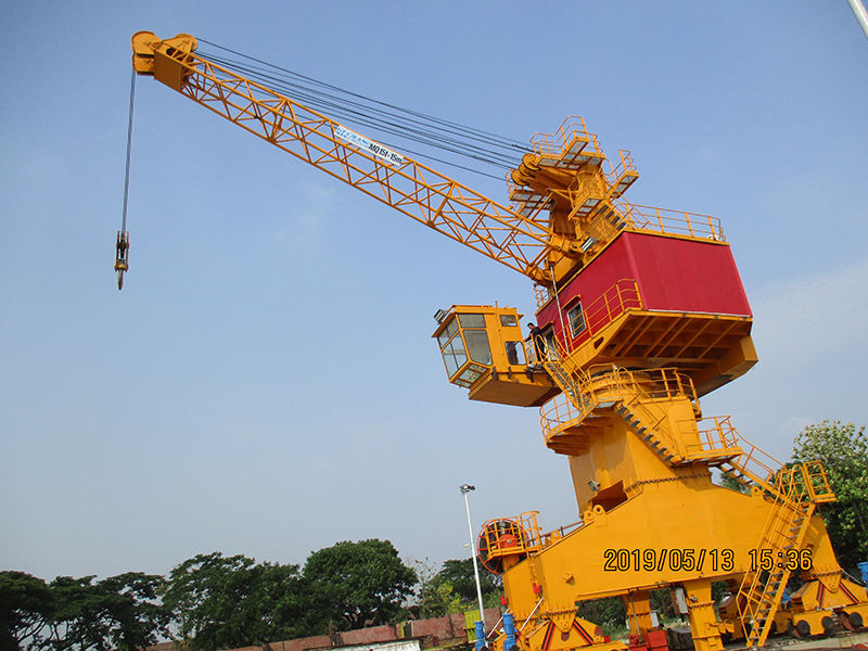 Pedestal crane is a kind of jib crane supported on a ground track or foundation by supporting legs. It is fixed or can run along the ground track, the railway vehicles or other ground vehicles can travel through the crane gantry frame. The pedestal crane commonly uses the luffing boom and the horizontal amplitude system.